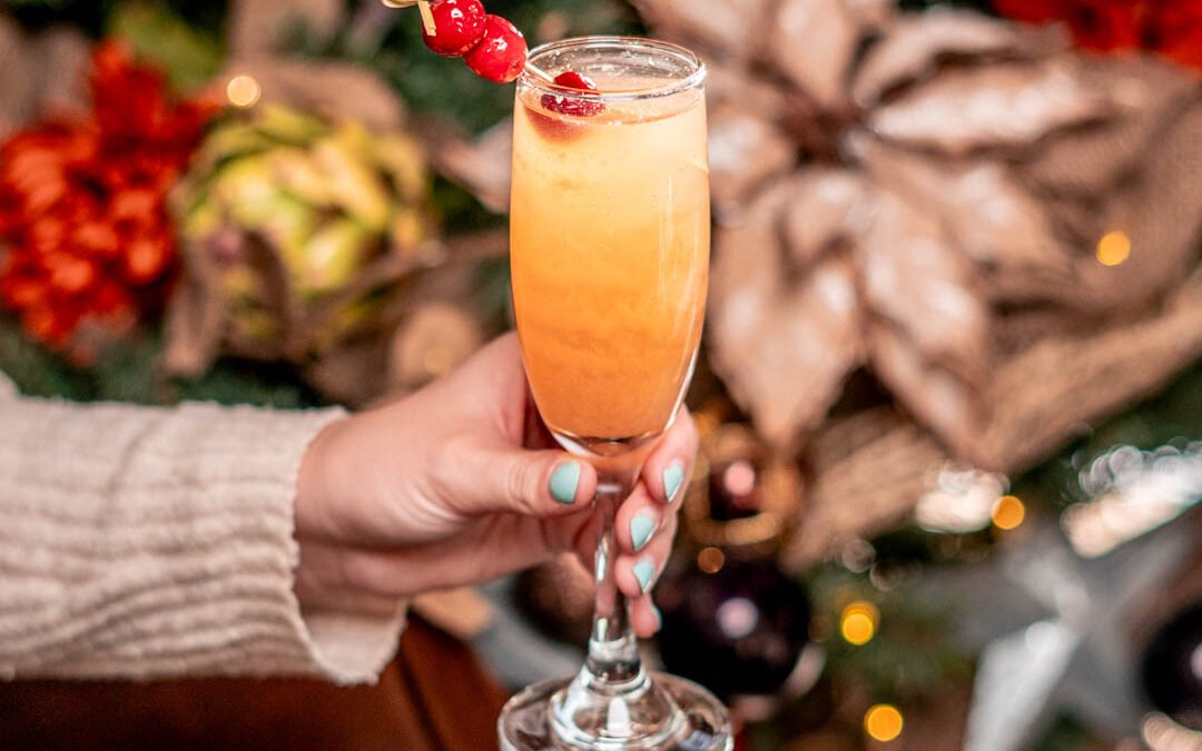 Add first thee ingredients to shaker and strain into prosecco flute. Top with prosecco. Garnish with three cranberries on a stick.