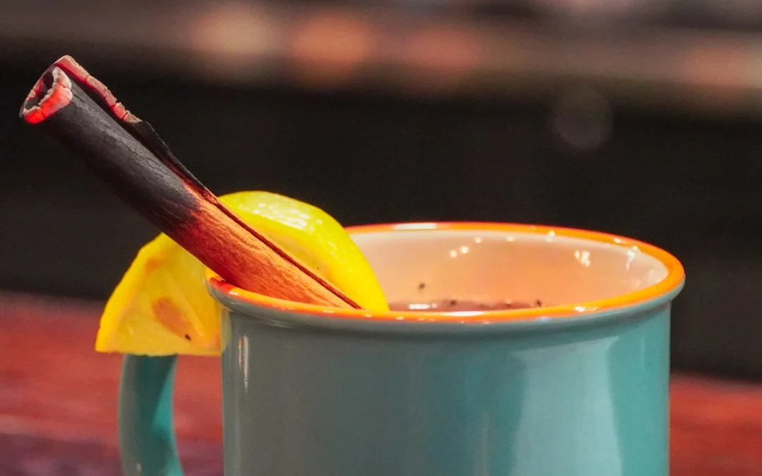 Add Cherry Spirit, hot water, lemon juice, and honey syrup to a pot and bring to a boil on the stovetop. Strain into a mug. Torch cinnamon stick and add to the mug.